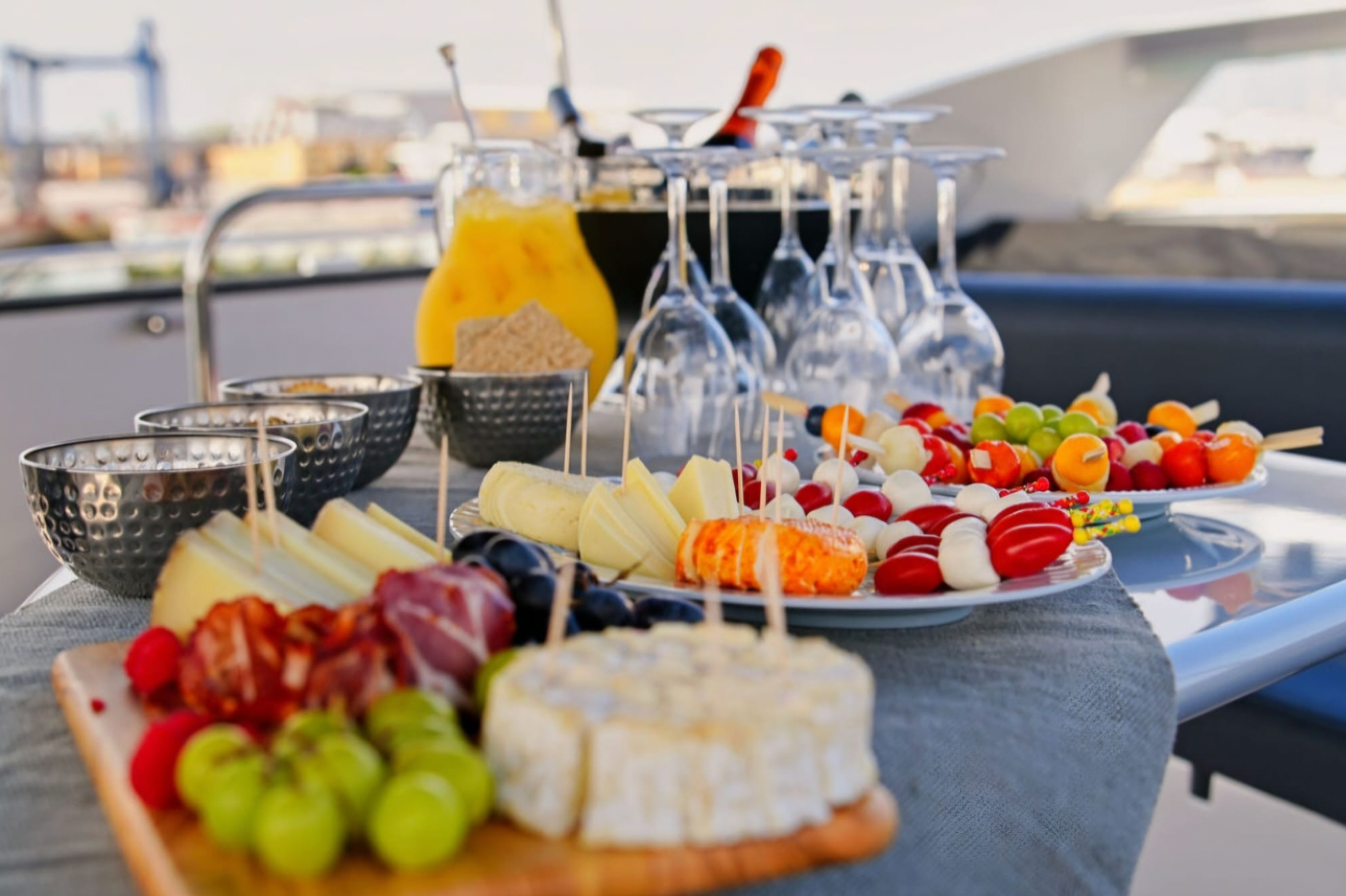 Our day charters include a professional crew, local cruising fuel, a welcome drink, wine (rosé, white) & beers, soft drinks, light snacks (fresh fruits, pastries or local tapas), towels, and VAT. Many of our yachts also come equipped with water toys such as paddleboards, snorkels, or Seabobs. Catering upgrades, premium drinks, or custom experiences (like private chefs or transfers) are available upon request.